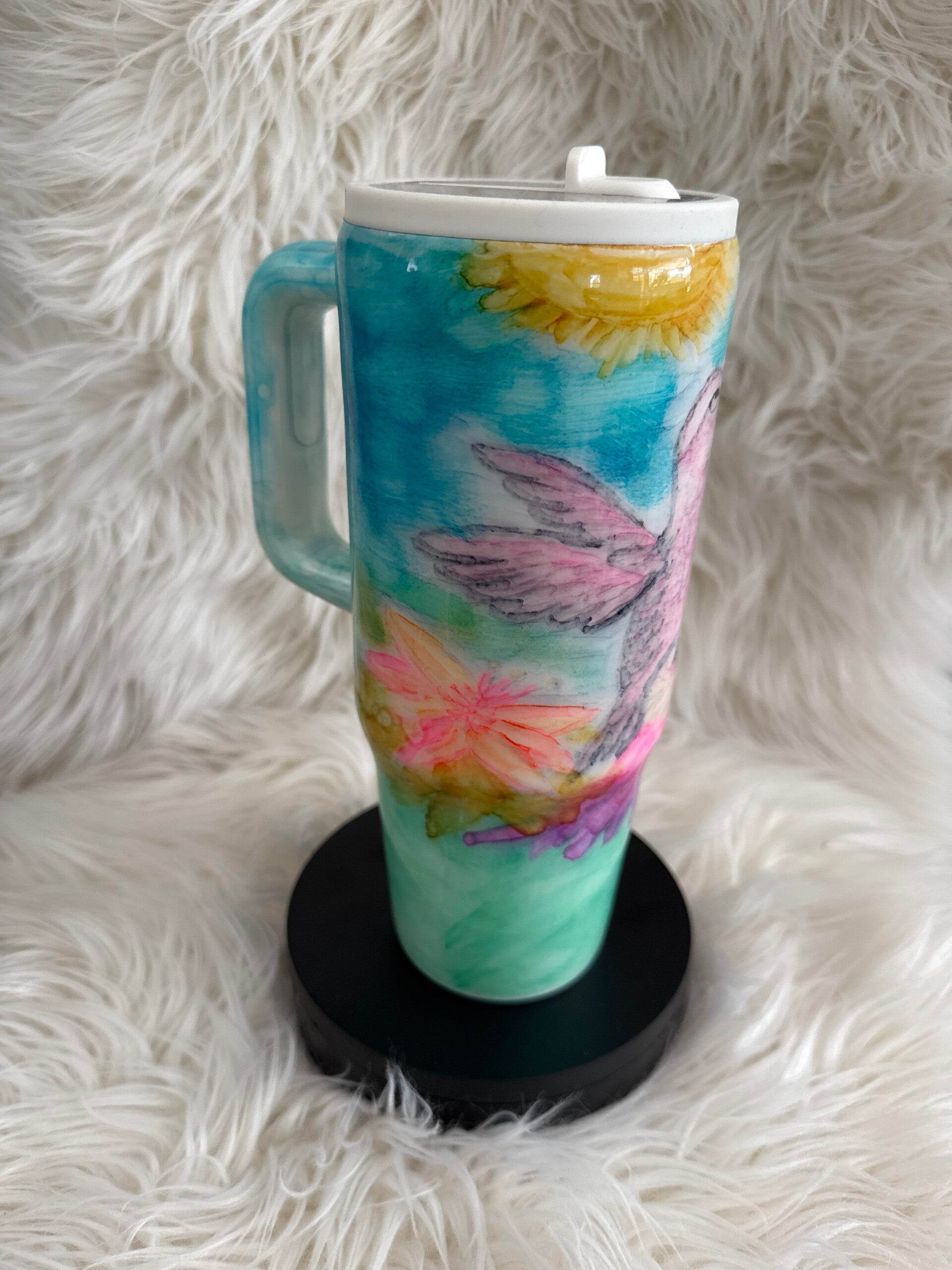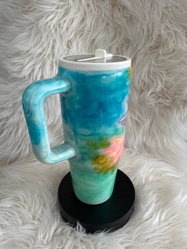 Tumbler/Thermobecher außen mit Epoxidharz in verschiedenen Farben verziert.